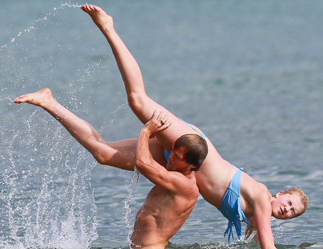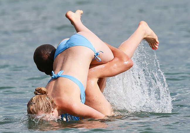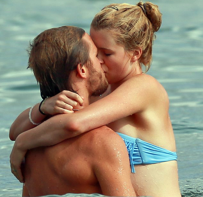 Όπως φαίνεται και στις φωτογραφίες οι δυο τους είναι τρελά ερωτευμένοι με τις αγκαλιές, τα φιλιά και τα παιχνίδια μέσα στο νερό να δίνουν και να παίρνουν.