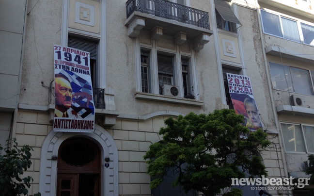 Ανέβασε και πάλι δύο πανό κατά της Γερμανίας στα μπαλκόνια του σπιτιού
