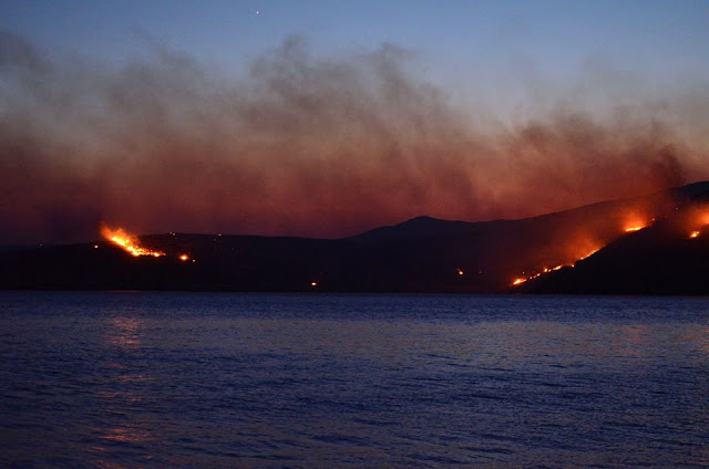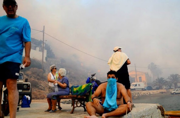 Οι κάτοικοι και οι λουόμενοι που ευρίσκοντο στο Μέγα Λιβάδι έφυγαν με βάρκες διότι κινδύνευαν και η φωτιά είχε αποκλείσει τον αυτοκινητόδρομο