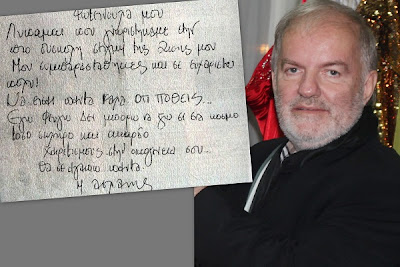 λυπάμαι που γνωριστήκαμε στην πιο δύσκολη στιγμή της ζωής μου. Μου συμπαραστάθηκες και σε ευχαριστώ πολύ. Να είσαι πάντα καλά. Ο,τι ποθείς... Εγώ φεύγω. Δεν μπορώ να ζω σε ένα κόσμο τόσο σκληρό και άκαρδο. Χαιρετισμούς στην οικογένειά σου. Θα σε αγαπώ πάντα. M. Ασλάνης...»
