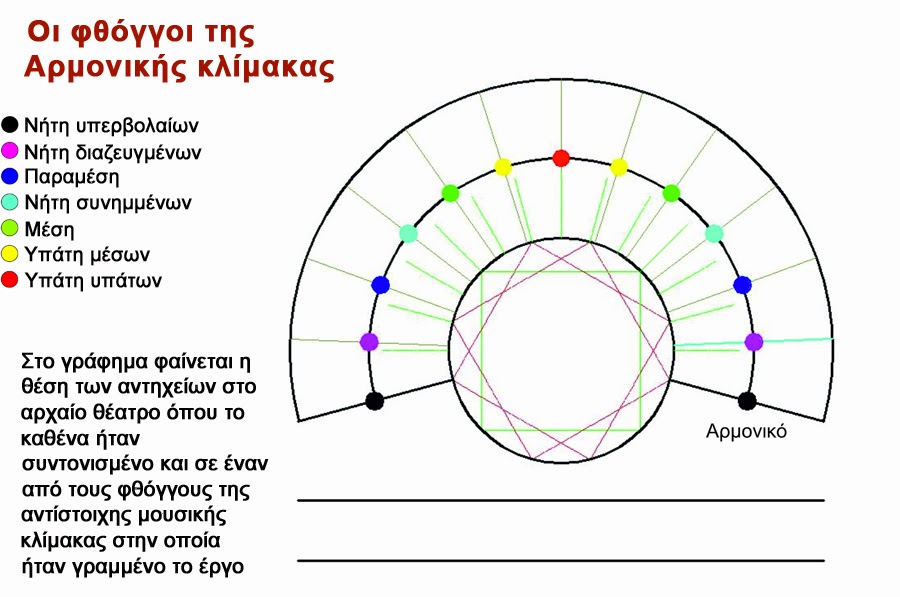 Από αυτές τις διαφωτιστικές περιγραφές του Βιτρούβιου μπορούσαν πια να φανταστούν τα περίφημα αγγεία ως σφαιρικά ίσως στο σχήμα, μεταλλικά, που το κέλυφός τους να δονείται στις περιγραφόμενες νότες του εναρμόνιου γένους, και σε τέτοια μαθηματική αναλογία μεταξύ τους ώστε να μεταδίδεται ενέργεια από το ένα στο άλλο αποτελώντας ένα ενεργό ηχητικό σύνολο. Ετσι που η συμβολή τους στην τελική ακουστική του χώρου να μην είναι απαραίτητα ηχοαπορροφητική.