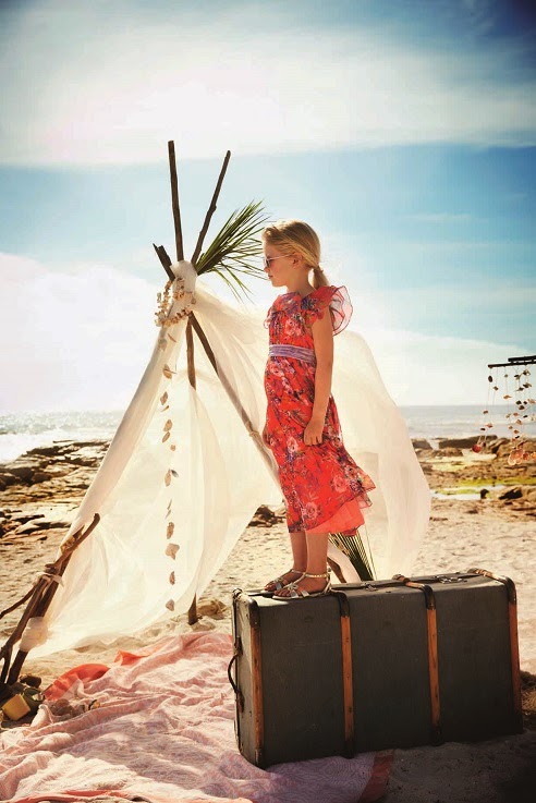 σύνολα ντεπιές, φορέματα για καλοκαιρινά πάρτυ, παιδικά κουστούμια για μικρούς κυρίους και πολύχρωμα μαγιό, όλα σχεδιασμένα σύμφωνα με την στυλιστική κληρονομιά των Monsoon Children.
