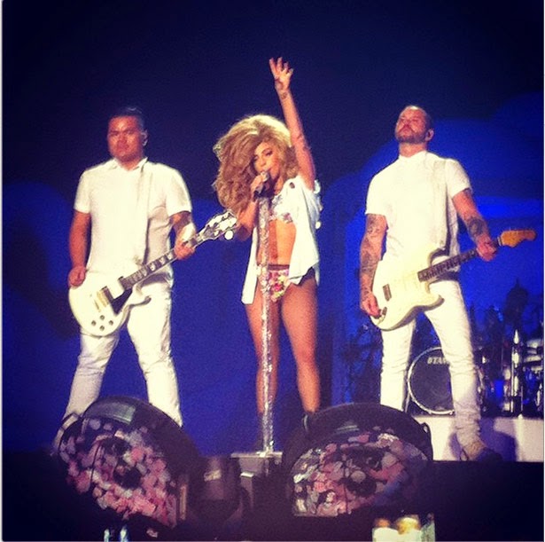 H Lady Gaga άλλαξε ρούχα και... μαλλιά. Έβαλε νέα περούκα. Είπε: «Εσείς είστε η έμπνευσή μου τα τελευταία 7 χρόνια» και συνέχισε να τραγουδά