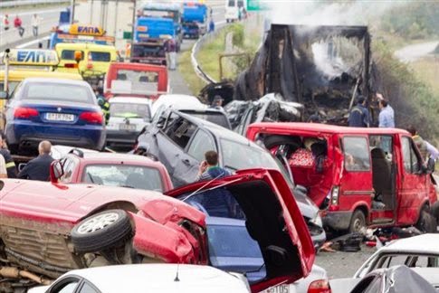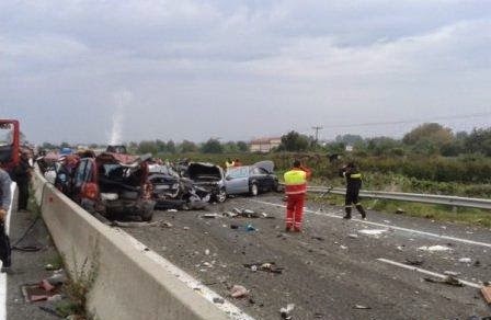Μεγάλη καραμπόλα σημειώθηκε λίγο μετά τις 10:30 το πρωί στην Εγνατία Οδό στο ρεύμα από Βέροια προς Θεσσαλονίκη.