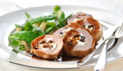 Χοιρινό με φρούτα, ξηρούς καρπούς και Philadelphia σε σως από κρασί πόρτο