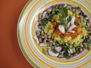 Σαλάτα με μαυρομάτικα φασόλια, καρότα σοτέ και dressing μουστάρδας
