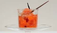 Γεμίζουμε αποστειρωμένα βάζα, βάζοντας και ένα κομμάτι από το κλωναράκι βανίλιας.