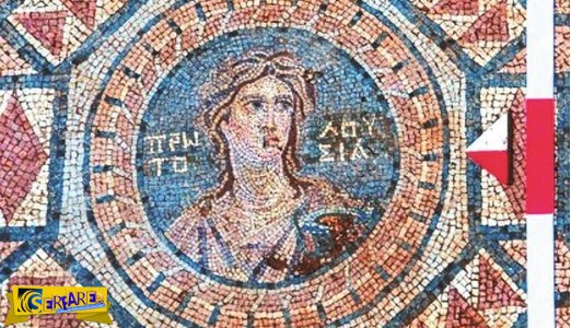 Το ψηφιδωτό συμβολίζει τη ζωή και την πολυτέλεια, καθώς απεικονίζει τις αρχαιοελληνικές μορφές της Τρυφής και του Βίου.Δίπλα τους μια ακόμα μορφή συμπληρώνει την… τρόικα των προσώπων· «Πρωτολουσία» γράφει στα Ελληνικά. Το υπόλοιπο δάπεδο είναι διακοσμημένο με μοτίβα, πορτρέτα ανδρών και γυναικών και φτερωτές μορφές.