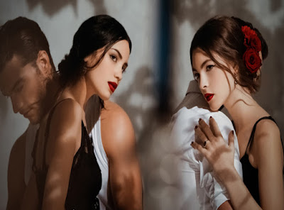 οίκου Kaelen, από τα ποπ μανταρινί κόκκινα χείλη με τις μεγάλες χαλαρές μπούκλες και τους λευκούς τόνους στα μάτια.