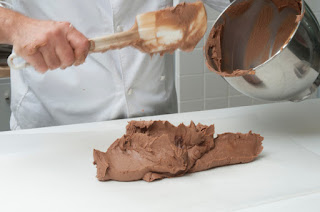 Βάζουμε στο ψυγείο για μερικές ώρες να σφίξει καλά και αφαιρούμε τη λαδόκολλα.