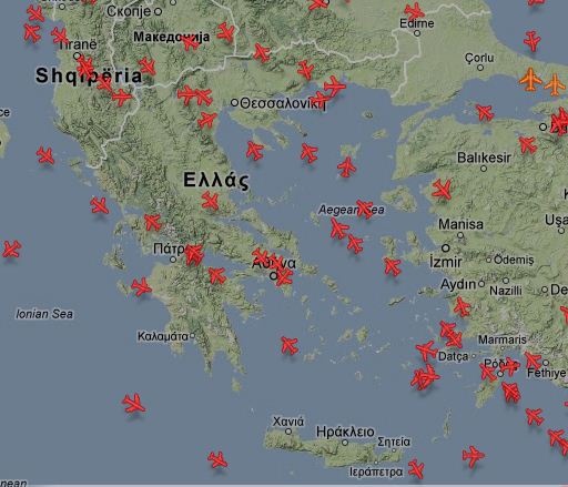 Για να δείτε τα στοιχεία του αεροπλάνου που σας ενδιαφέρει και την πορεία του, κάντε κλικ επάνω στο σχήμα του αεροσκάφους που θέλετε.