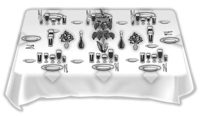 Δηλαδή βάζουμε τα μαχαιροπίρουνα που θα χρειαστούν πρώτα (της σαλάτας και της σούπας) προς τα έξω και μέσα αυτά του κυρίως πιάτου.
